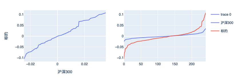 我们可以用下面的方式,将个股与沪深300的涨跌相关性进行可视化,从而得到更直观的印象。