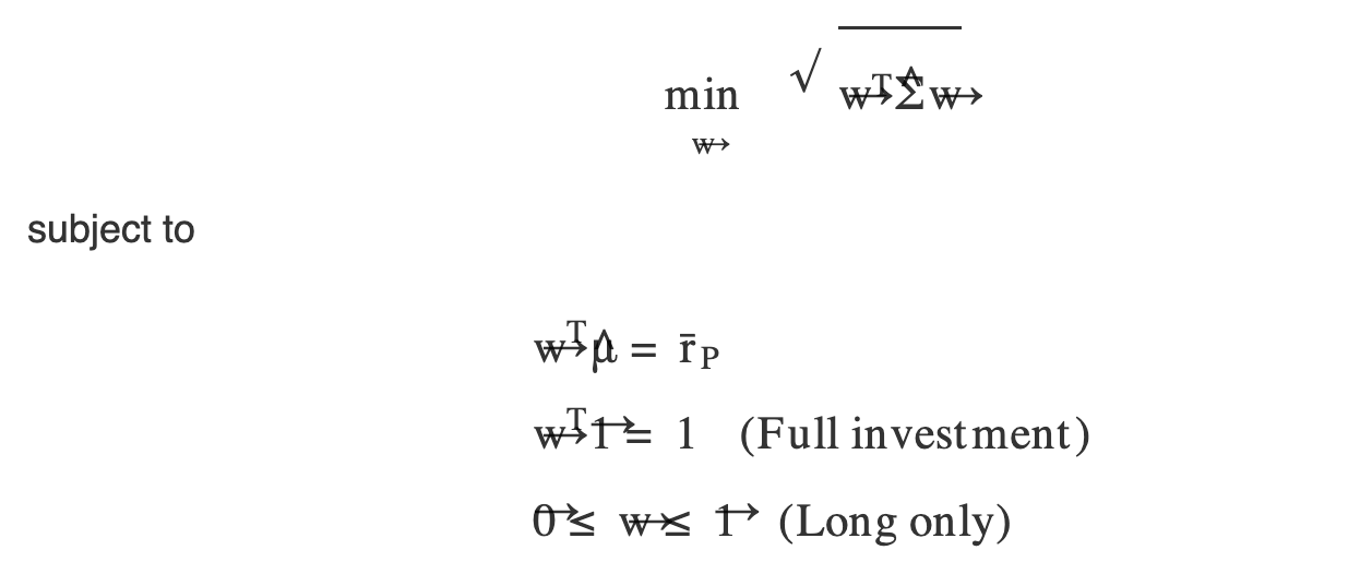 寻找给定收益率下的最小波动率,或者给定波动率下的最大夏普率,这实际上是一类常见的优化问题,即: