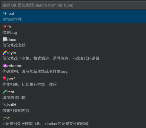 这个扩展会将 commit message 进行分类,并且给每个类别加上 emoji 图标,以便我们更快捷地识别类别: