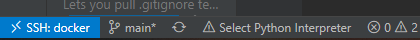 在 Python 扩展安装完成之后,就可以进行 Python 开发了。在开发之前,需要为工程选择 Python 解释器。可以从命令面板中输入 Python: Select Interpreter 来完成,也可以点击状态栏中的选择图标,如下图所示: