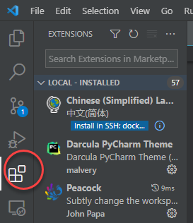 安装好 VS Code 之后,在侧边栏上就会出现如下图所示工具栏: