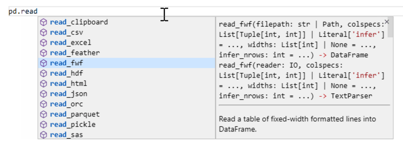 它可以随用户输入时,提示函数的签名、文档和进行参数的类型提示,如下图所示: