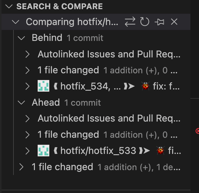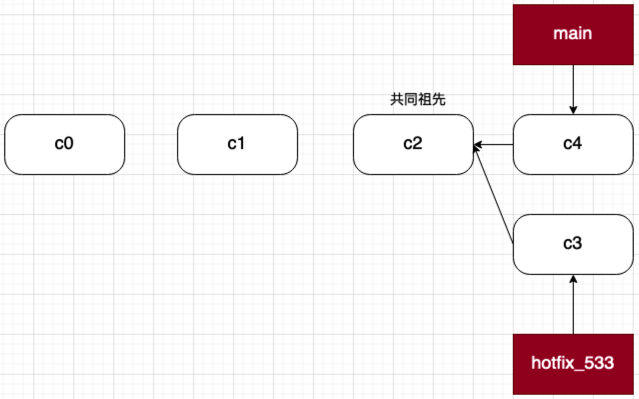 下图展示了 hotfix_533 分支创建时,相关分支的状态图: