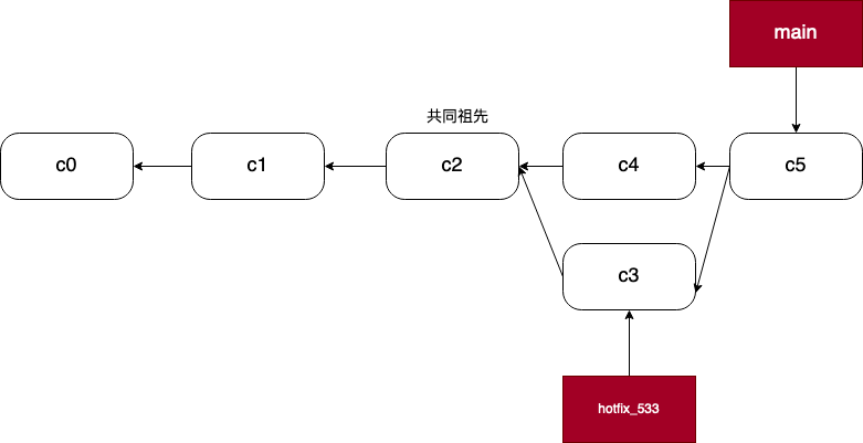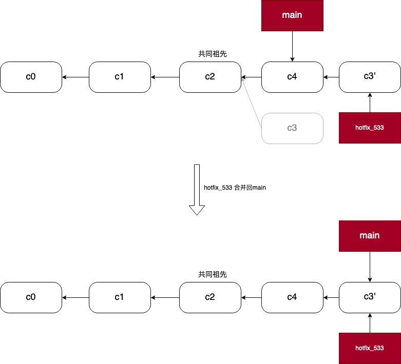 我们也可以对 hotfix_533 进行 rebase 操作,使得 c3 的父结点从 c2 变为 c4: