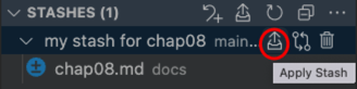 在 vscode 的 git lens 扩展中,我们可以在"Changes"面板中,将当前的变更贮藏(如图 8- 5 所示):