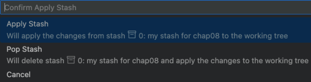 点击"Apply"按钮,在弹出来的对话框中,给我们两个提示,一个是只应用,不删除该贮藏;另一个是应用并删除该贮藏: