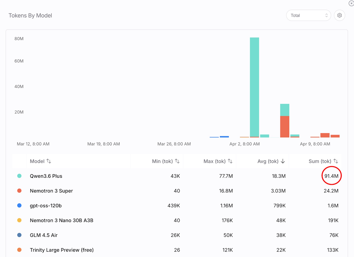OpenRouter 最大的优势是聚合了几乎市面上所有的主流模型,且提供大量免费配额。我养龙虾的第二天,就完全领会了 OpenRouter 的玩法。当时 QWen 3.6正在免费使用期,我一天最高用到7500万的 Token,用完了整整一千次请求。