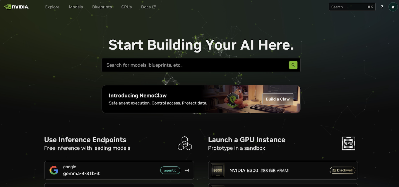 输入网址:https://build.nvidia.com。注意登录时,可能根据你的地域和语言设置发生重定向到别的 URL。我们没有详细测试,但这个免费服务应该只能在这个网址上申请。