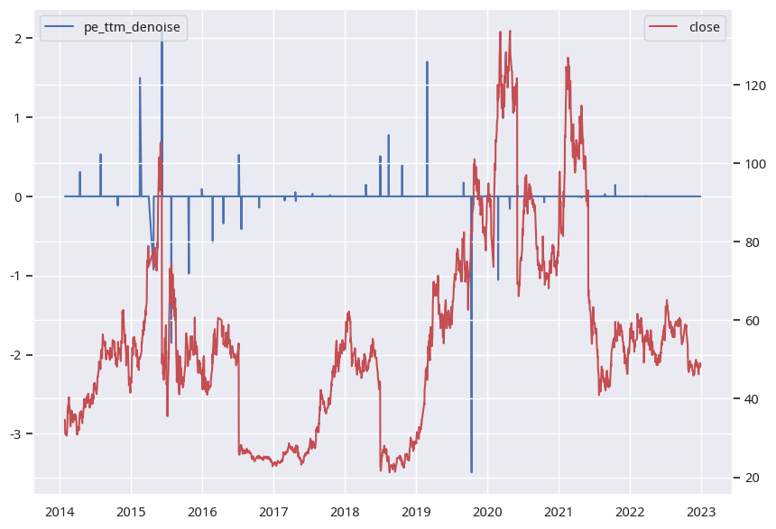 去掉噪声后的PE与指数走势