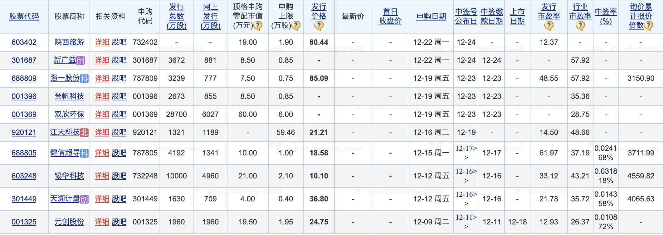 我们可以通过东方财富网 (https://data.eastmoney.com/xg/) 来获取新股数据。