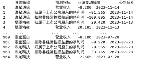 如何将其构建成因子以供投资呢?按照 Moskowitz 的原始定义来生成因子,需要提取业绩预告信息。我们可以利用免费的 akshare 来获取这部分信息。