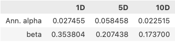 Alphalens 提供了alpha和beta分析。方法是factor_alpha_beta: