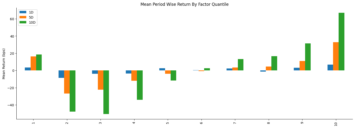 - 默认地, alphalens计算收益是,会构建多空组合,即做多组号最大的分层,做空组号最小的分层。