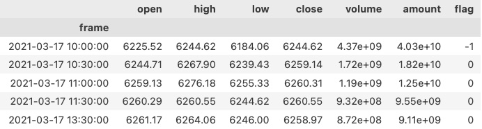 这份数据包括了标签(即flag一列),但没有我们要的特征工程数据。因此,我们要先从OHLC数据中提取出特征。