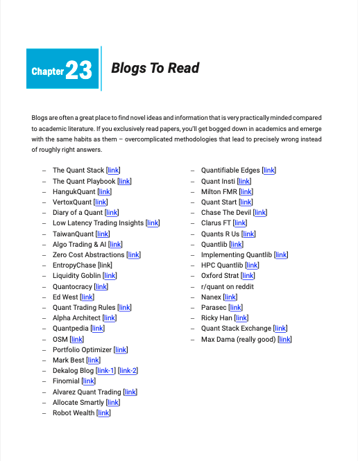 博客阅读:推荐了一些与量化交易相关的博客,如 The Quant Stack、The Quant Playbook、HangukQuant 等。
