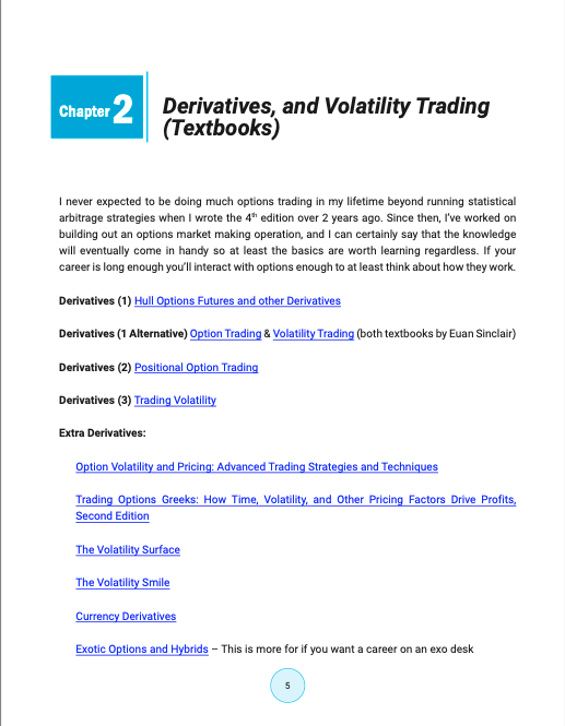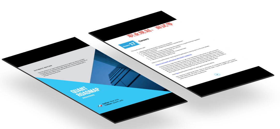 其他路线图:推荐了一些其他的量化交易资源列表,如 Vertox 的资源列表、Moontower 的资源列表(尤其是期权方面)、Moontower 的博客和在线作家、Options Starter Pack、QM 的教科书、QuantGuide 等。