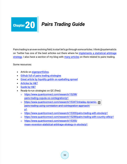 配对交易指南:介绍了一些关于配对交易的资源,如@systematicls 的文章、作者博客上的相关文章、Github 上的配对交易策略等。