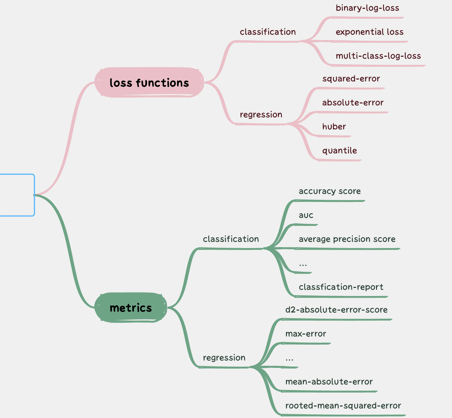 在sklearn中,提供了大量的损失函数和度量函数。下图列举了部分Sklearn提供的损失函数和度量函数:
