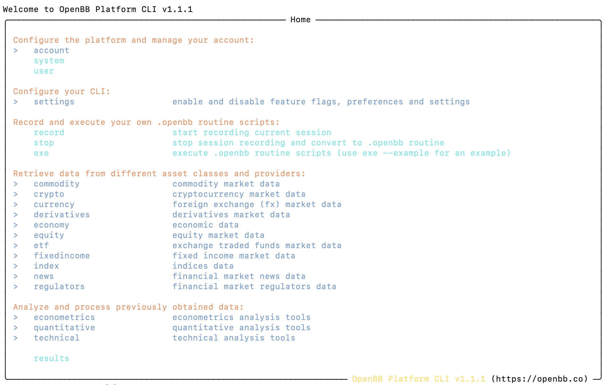 安装后,我们可以在命令行下启动 openbb。