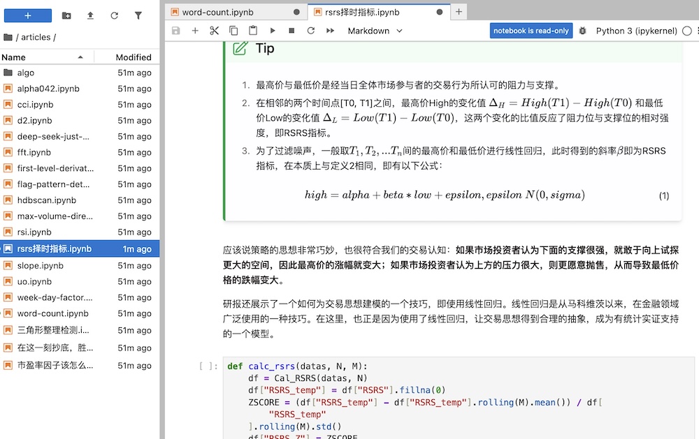 本文复现了 RSRS 因子,可运行的完整代码和数据在我们的研究平台中提供。如果你关心它的最新表现,或者任何一段时间的表现,只需要自己修改时间参数运行即可得到答案。