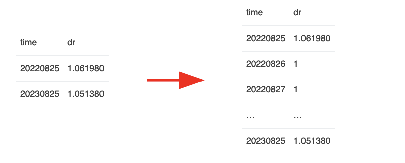 这段代码的核心逻辑是,dd['dr']是一个带时间戳的稀疏数据。我们首先要把它展开成: