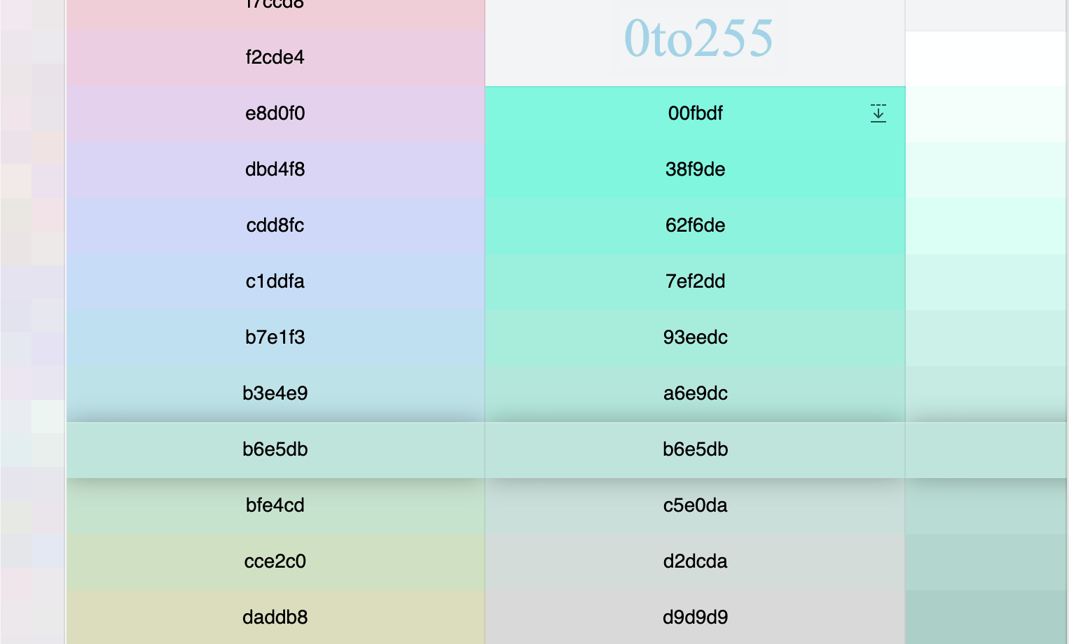 这个网站名有点意思,因为在RGB空间里,每种颜色的取值都是0到255,所以叫0to255。