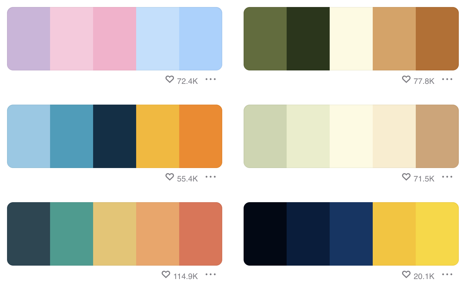 Colorion类似于coolors,也给出了一些预生成的高质量的色彩组合。
