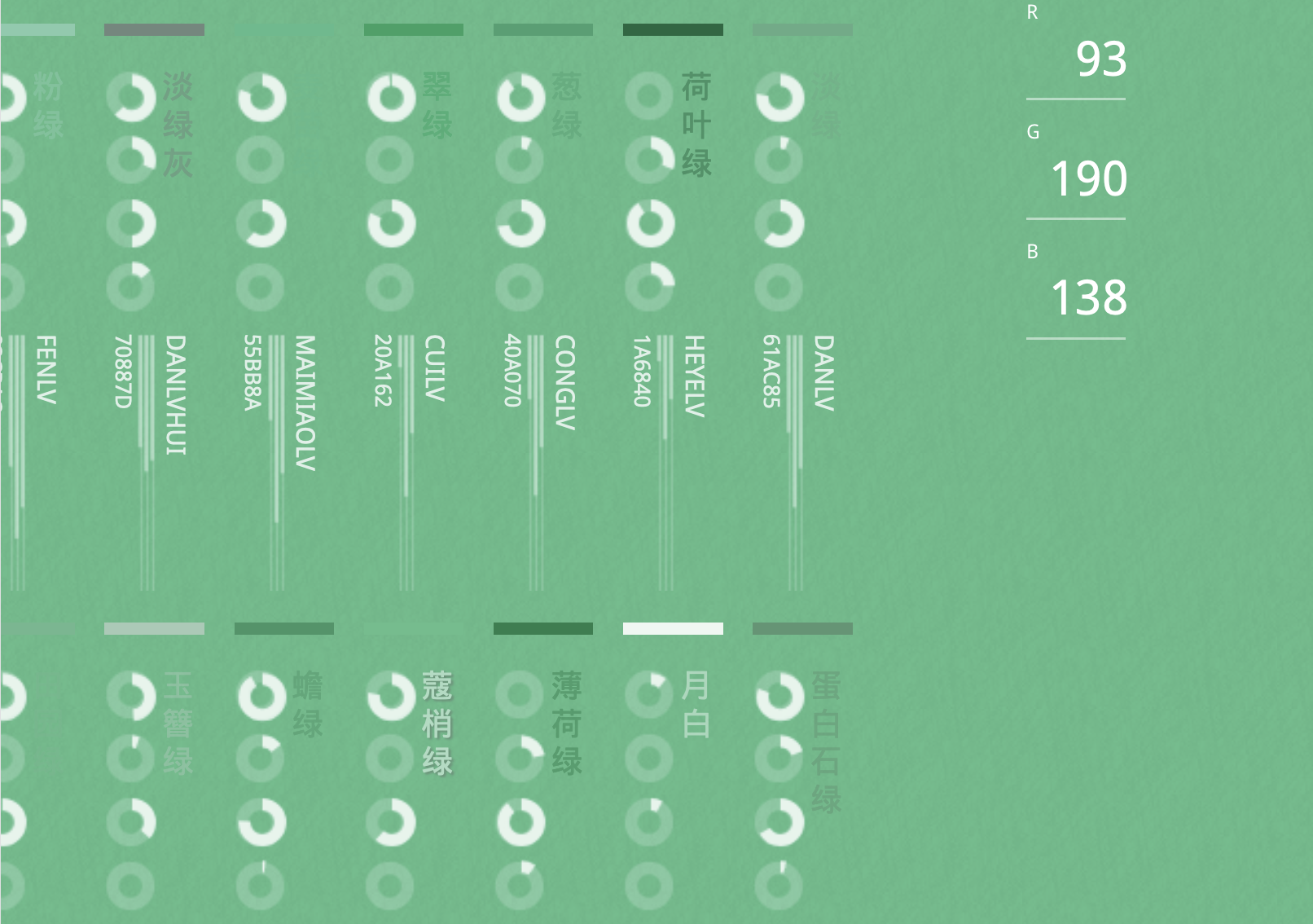 它利用色彩理论,给出了常用的颜色搭配及它们之间的变换。有点传统了,但经典永不磨灭。