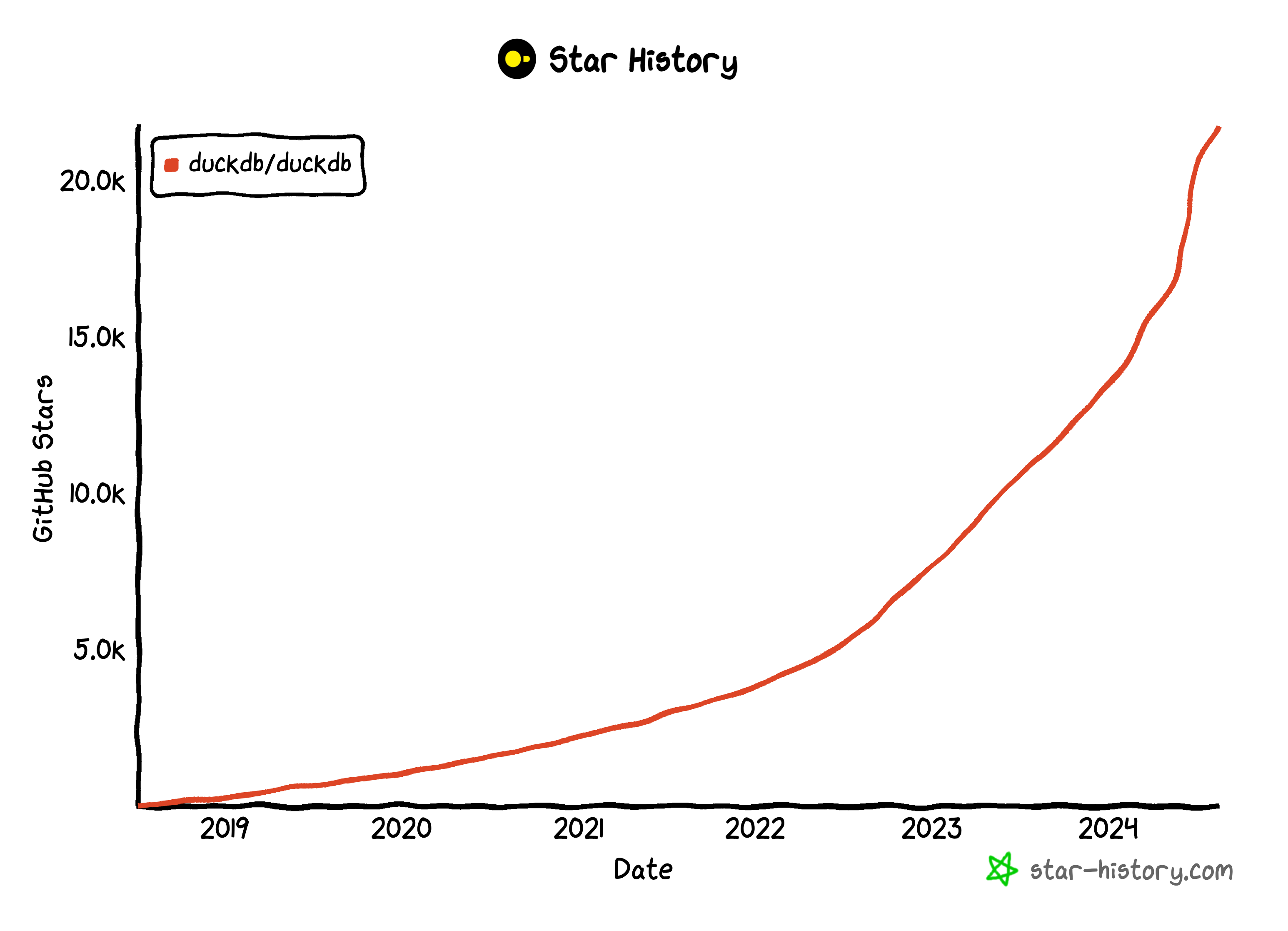 从 1.0 发布以来,duckdb 的似乎受到了更大的欢迎: