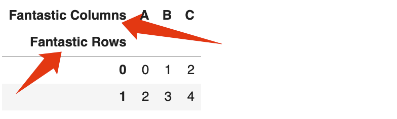 总之,如果我们要给行索引或者列索引命名,请使用"正规"方法,即rename_axis。我们绕了一大圈,就是为了说明为什么rename_axis才应该是用来重命名行索引和索引的正规方法。