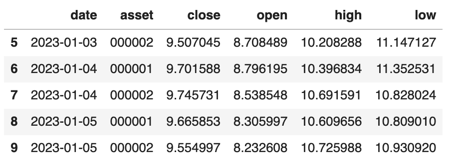 此时,new_date是level=0的行索引,new_asset是level=1的行索引。要取这两个索引的值,我们可以用df.index.get_level_values方法: