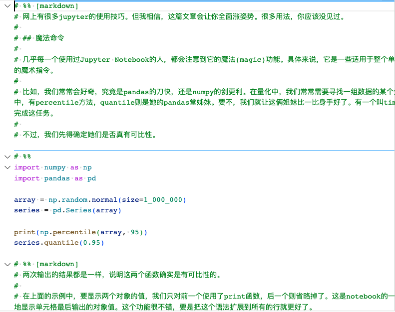 转换后的notebook中,原先的markdown cell,转换成注释,并且以# %% [markdown]起头;而原生的python cell,则是以# %%起头。