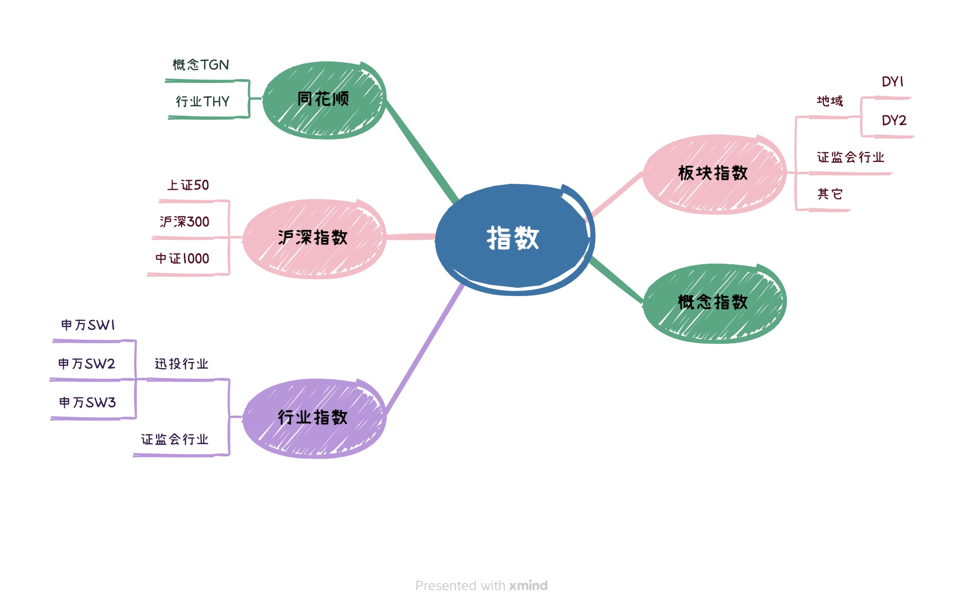 我们看到板块名字中,好多以 T 开头的,比如 TGN,THY 等。官方文档中似乎没有关于它们的说明,猜测可能是同花顺概念、同花顺行业 。