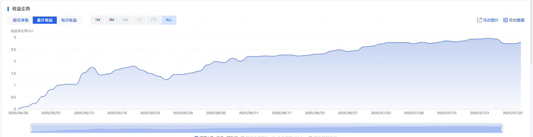 A策略:已运行30天,区间总计累积收益为30%(使用comp计算得到) B策略:已运行25天,区间总计累积收益为20%(使用comp计算得到)
